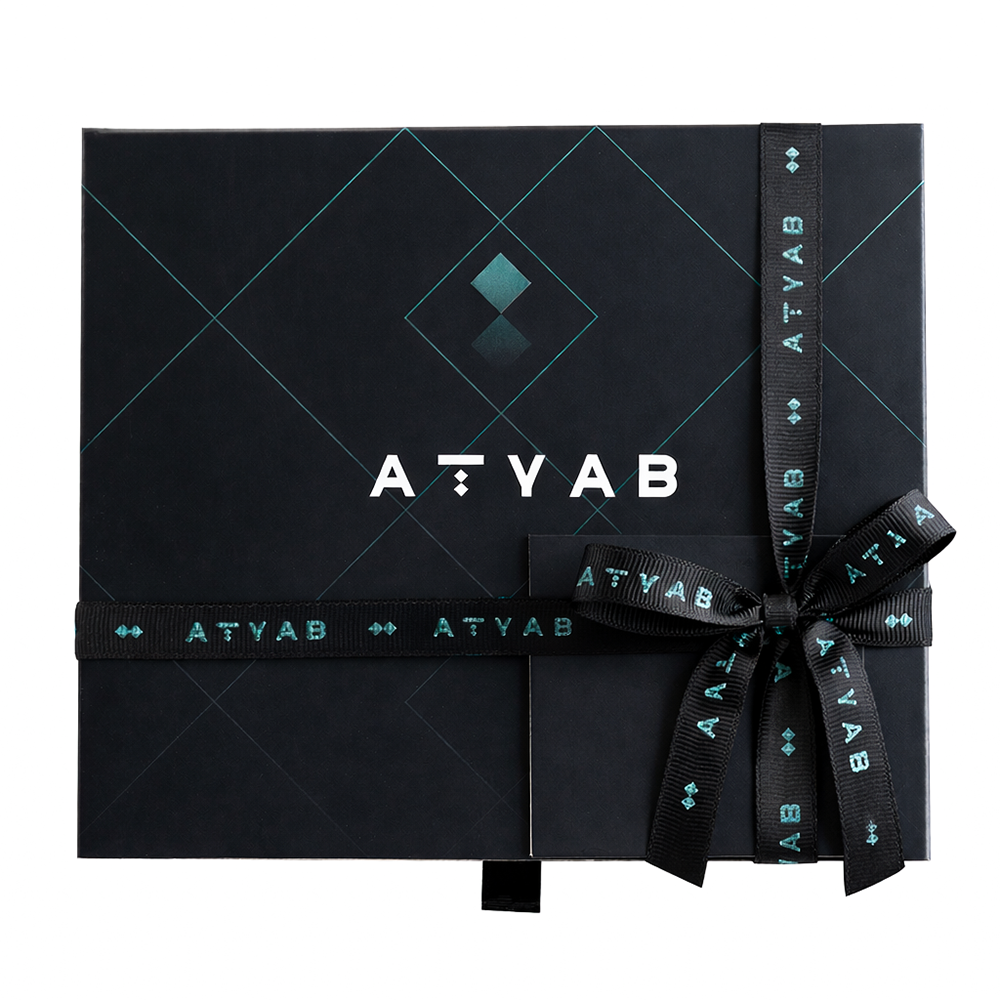 In addition, it comes with a free gift: a black Twist engraved with the Atyab logo in gold, along with a small blank gift card for your personal touch